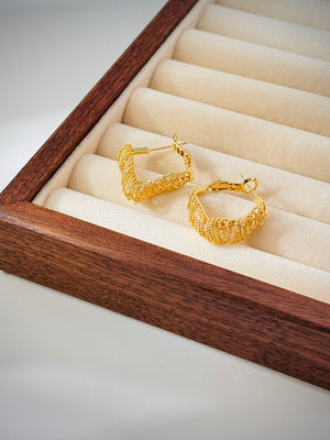 These gold-plated chandelier earrings are meticulously designed with intricate filigree detailing, ensuring they catch the light and eyes of admirers with every turn.